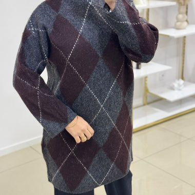 Pull à motif marron/gris