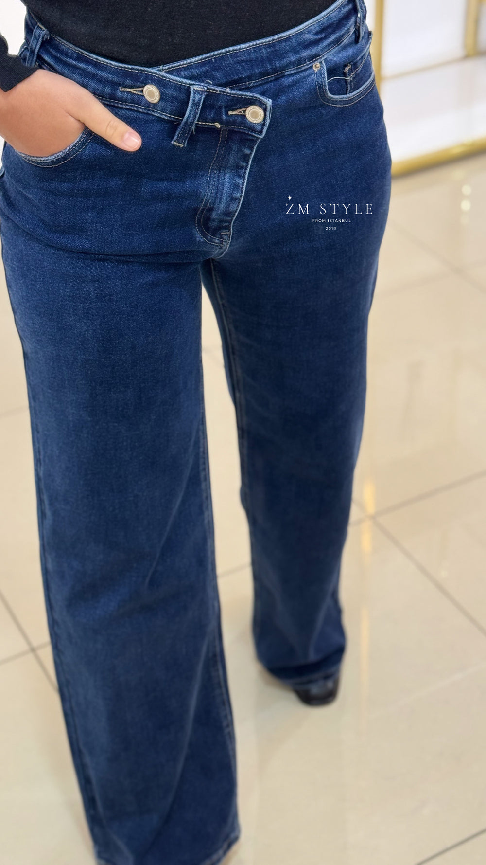 Un détail qui change tout : optez pour ce jean à bouton asymétrique, alliant confort et originalité.